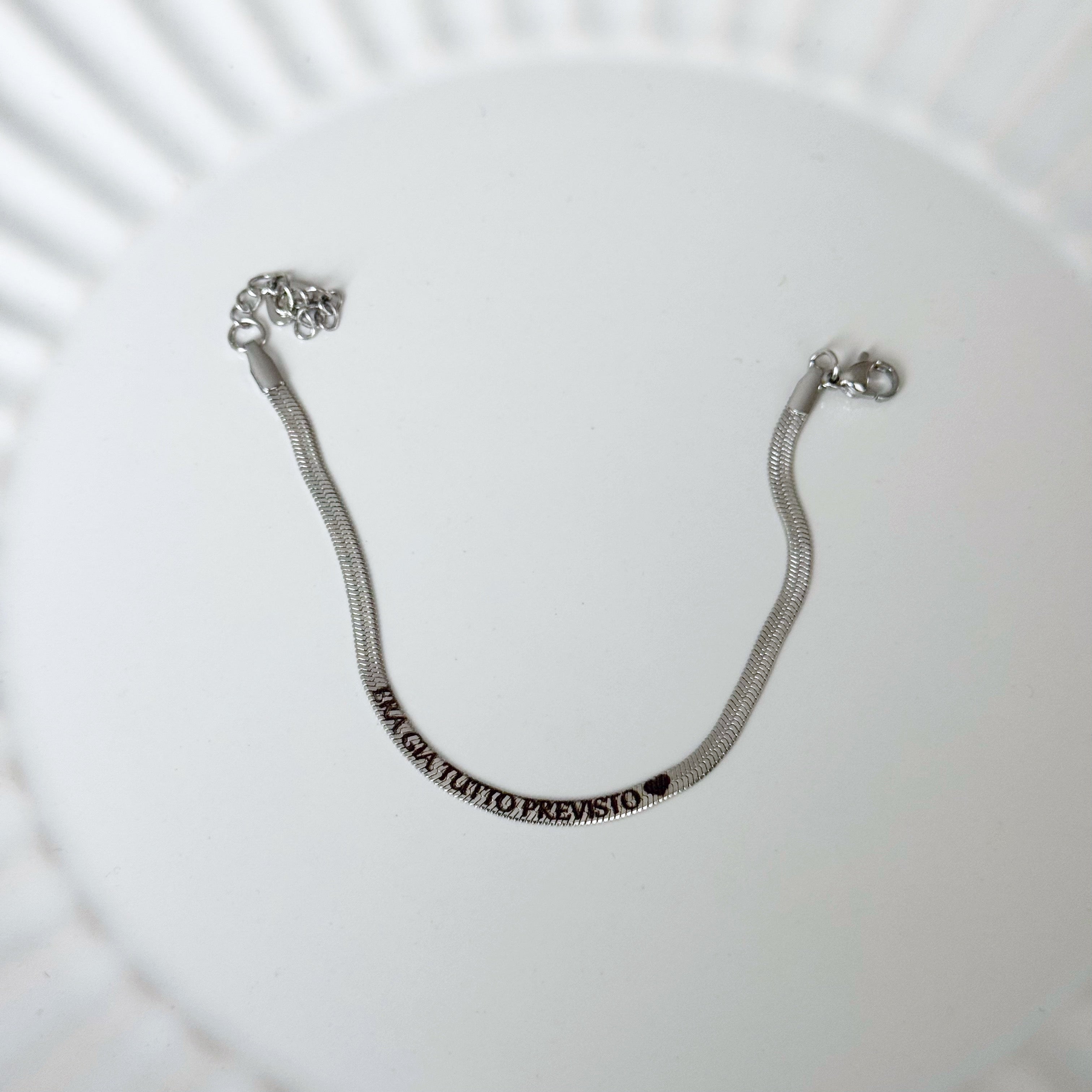 In acciaio.Larghezza 4 mm.lunghezza 16 e mezzo. Raggiunge 19 e mezzo con regolazione. Inserire la personalizzazione da effettuare nell’apposito campo.