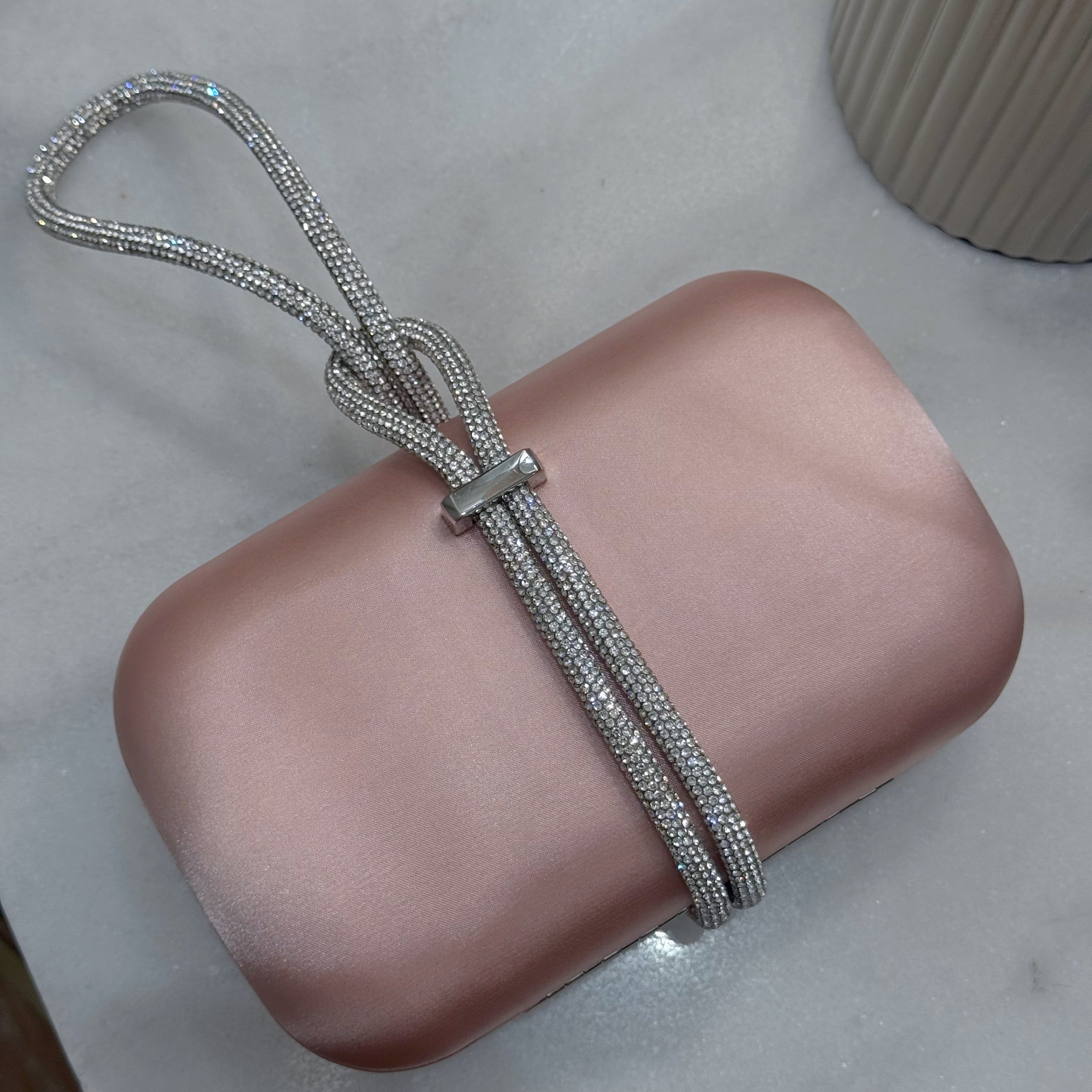 In raso.Con manico in strass.E catena interna.Misure 18x11
