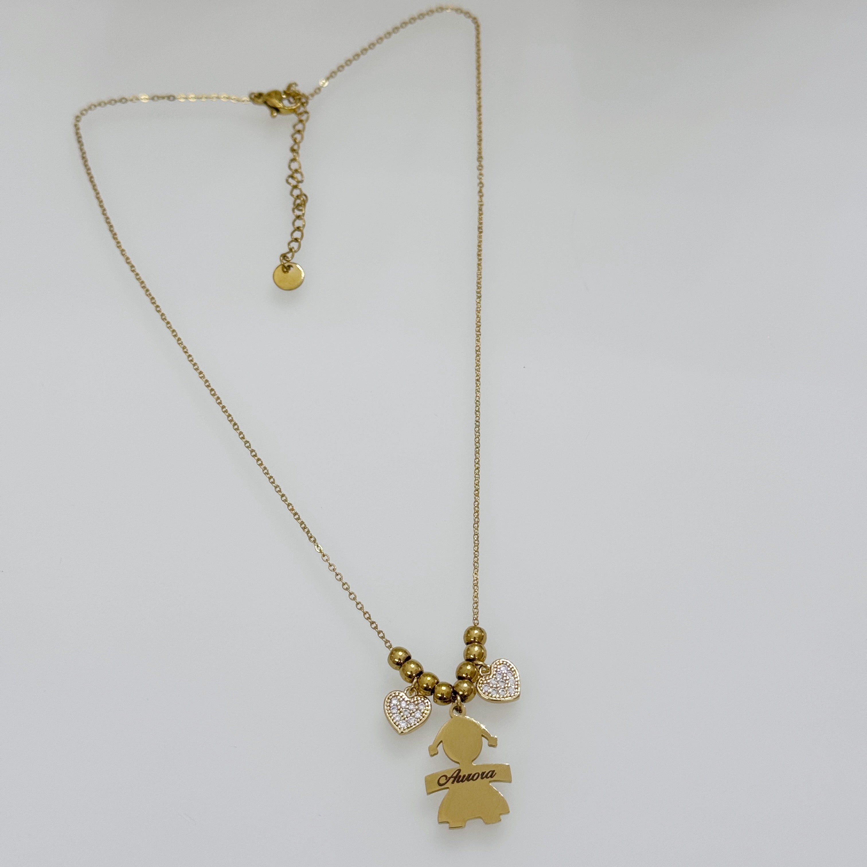 Collana con bebè in acciaio.Indicare sesso bebè e incisione nell’apposito campo.